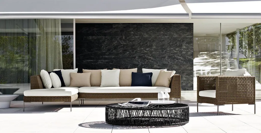 13 Jahre nach seinem Erscheinen in der Kollektion von B&B Italia wird das Sofasystem Charles, ein Best- und Longseller der Marke, nun in einer neuen Version für den Außenbereich vorgestellt. Die charakteristischen Eigenschaften dieses modernen Klassikers sind erhalten geblieben: Das schlanke Gestell, die Flexibilität des Systems und das schlichte Design des Aluminiumfußes mit der umgekehrten L-Form.