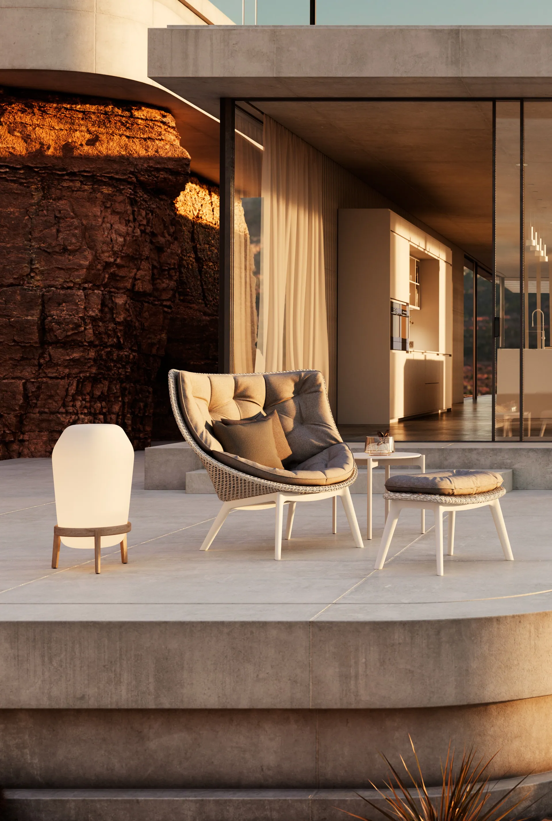 Leuchten: Tauchen Sie ein in die Welt der DEDON Leuchten und heben Sie Ihr Outdoor-Erlebnis auf ein ganz neues Level. Mit einem Outdoor-zertifizierten und aufladbaren LED-System bieten die Leuchten nicht nur ein elegantes Ambiente, sondern verwandeln Ihren Außenbereich zu einem luxuriösen Rückzugsort.