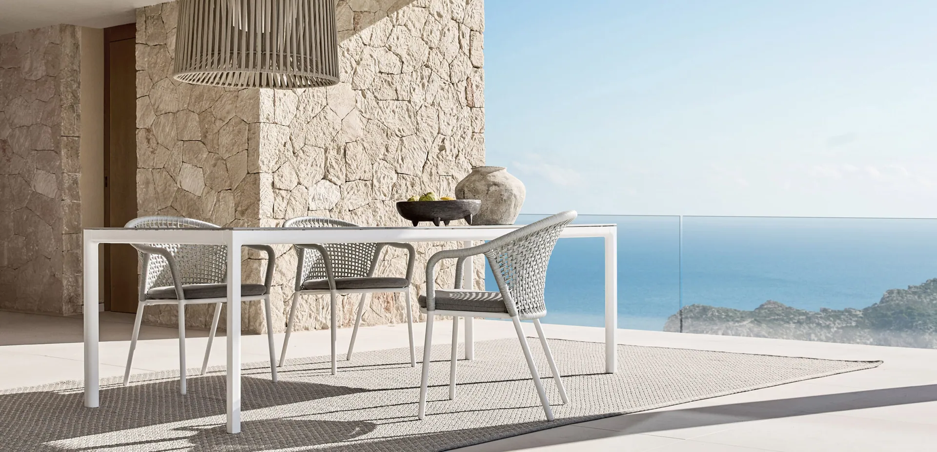 Das Design der Serie CLUB ist geprägt durch eine offene Flechtung aus einer Soft-Touch-Schnur, welche von einem geradlinigen Aluminiumrahmen getragen wird. Die moderne Längsflechtung im Zusammenspiel mit gemütlichen Polstern vermittelt eine solide Leichtigkeit.