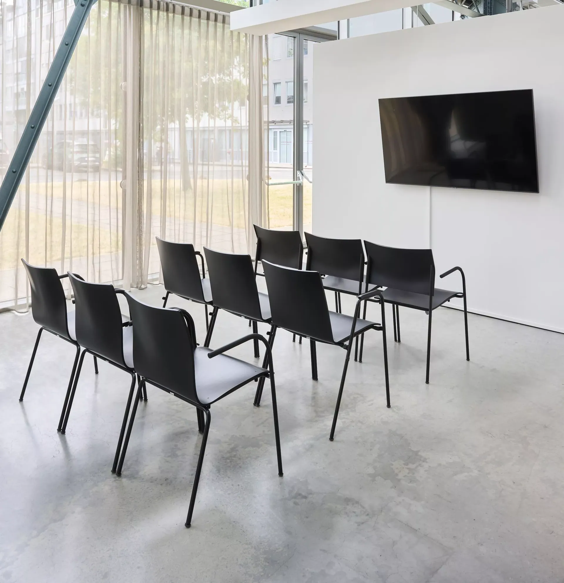Der S 264 von Thonet ist ein vielseitiger und funktionaler Mehrzweckstuhl, der speziell für den Einsatz in Veranstaltungsräumen, Konferenzsälen und öffentlichen Bereichen entwickelt wurde. Entworfen von Delphin Design, verbindet er zeitlose Ästhetik mit intelligenten Funktionen. Der stapelbare Freischwinger überzeugt durch sein leichtes Stahlrohrgestell und bietet hohen Sitzkomfort dank ergonomisch geformter Sitz- und Rückenflächen.