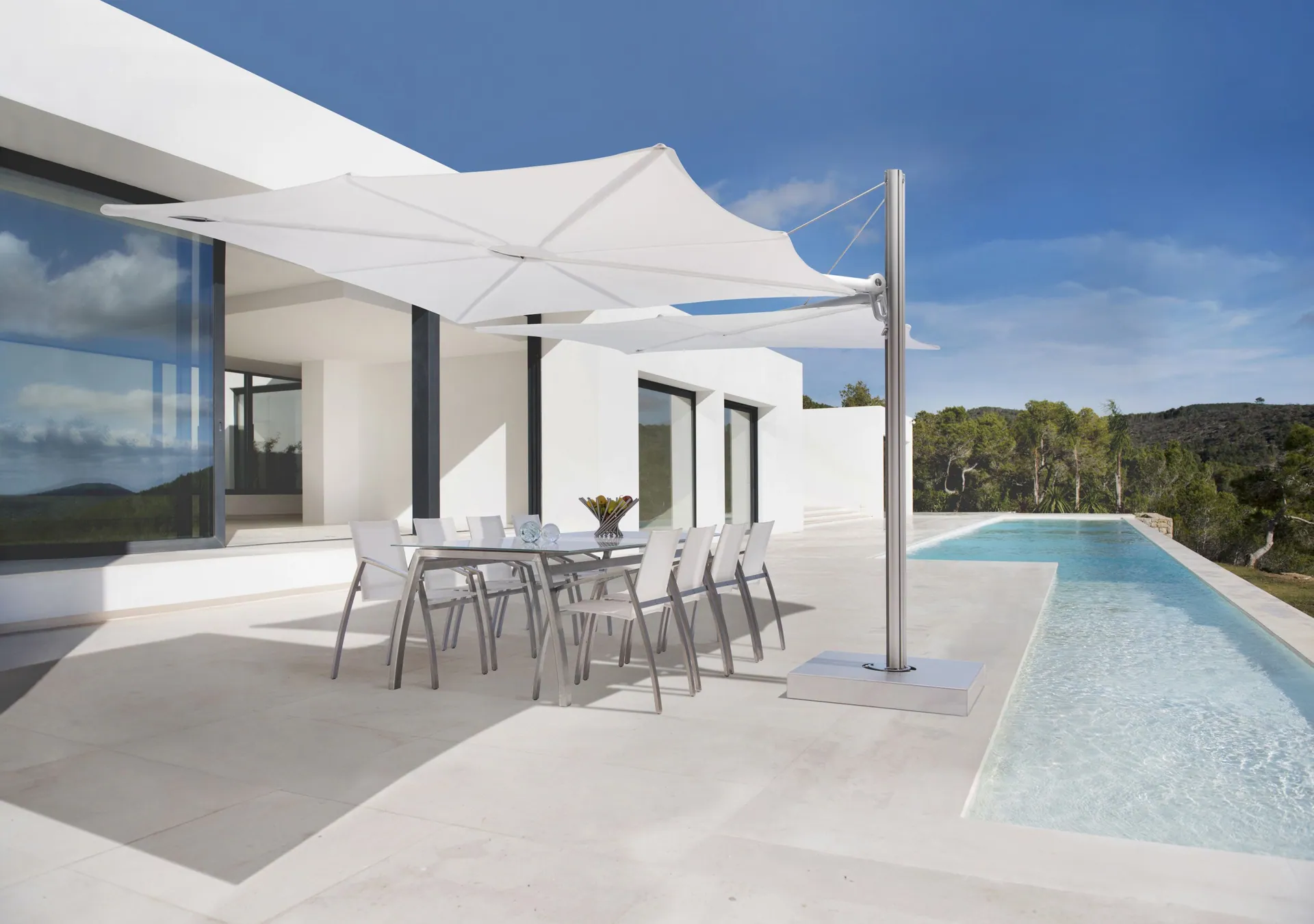In Belgien wird Schatten nicht einfach gespendet, er wird kreiert. So zumindest klingt es, wenn man einen Zusatz liest, den die Sonnenschirmexperten aus dem Nachbarland im Westen ihrem Namen geben: Innovative Shade Creations. Warum hier vom Kreieren die Rede ist, wird aber recht schnell deutlich, wenn man sich die wunderschönen und ausgefallenen Schirme anschaut. Bei diesen ist ein künstlerisches Wort wie kreieren mehr als angebracht, schließlich sind diese Schattenmacher durchaus kleine Kunstwerke. Innovativ sind sie, wie versprochen, auch allemal. Tauchen Sie hier bei der Villa Schmidt ein in eine Welt außergewöhnlicher Formen, welche angenehm und inspirierend wirken. Bei diesen Schirmen fällt es schwer, seinen Blick abzuwenden. Sie wissen das Auge des Betrachters gekonnt auf sich zu ziehen. So zum Beispiel der wunderbare Eclipse-Schirm, der scheinbar schwerelos über den Köpfen der Schattenliebhaber schwebt.