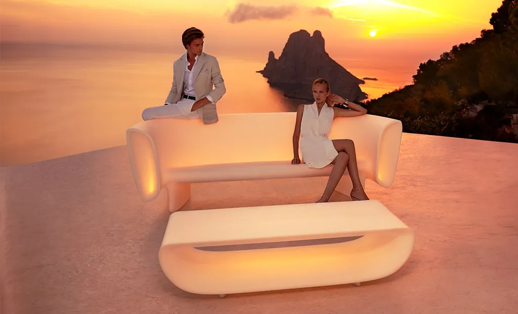 Bum Bum was born from the principle of not designing objects, but rather musical instruments to be used for another purpose; the same as a person who holds a shell to their ear to hear the ocean. This collection that has tubular shapes allows us to experiment with light and sound simultaneously. It’s “argonautic” form enables us to create a new environment, as well as atmospheric spaces, wherever we are. The collection is made up of a sofa, a table, an armchair and “toro”(bull), a unique member with a great variety of functions. It is a collection designed for the God of the sea, Neptune, and the mermaids that dance in time with the waves…It’s that simple… a summer dream.